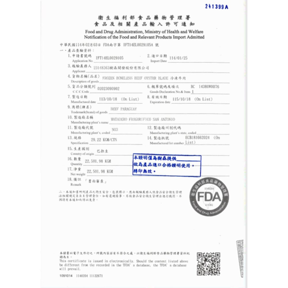 板腱 嫩肩里肌 產地巴拉圭