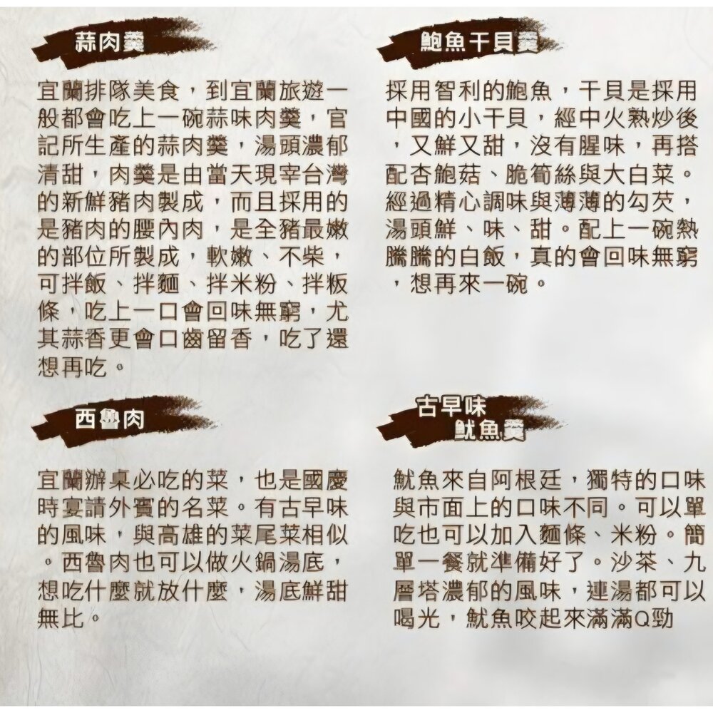 每一口蒜肉羹都是宜蘭在地的好味道,讓人感受到濃濃的家鄉情懷。這道美味的湯品不僅是一種味覺的享受,更是對宜蘭豐富的情懷。