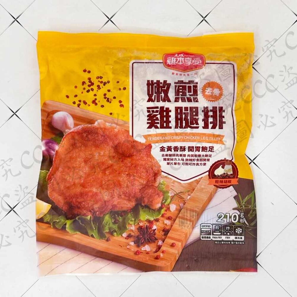 從氣炸鍋拿起的雞腿排,外皮酥脆肉質軟嫩多汁又入味,不愧總是在團購界的排行榜上呢!!