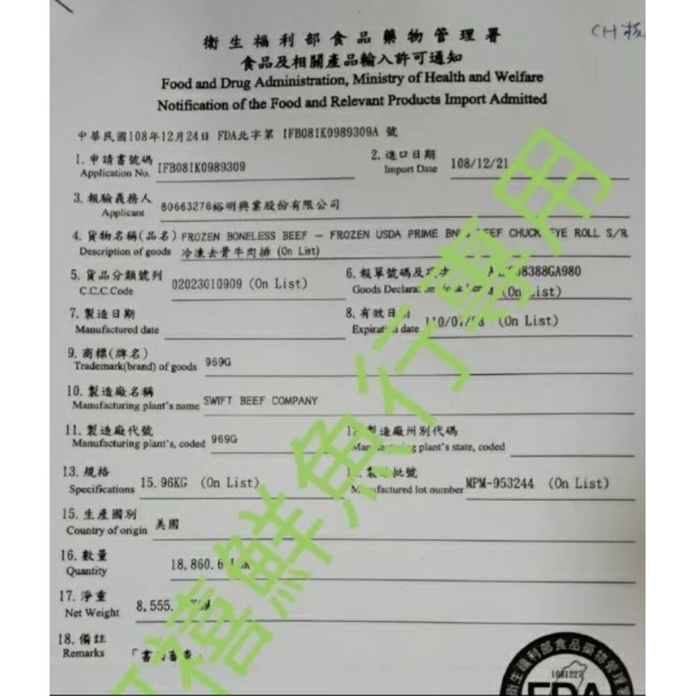 重量 500g 原肉產地 美國 平舖