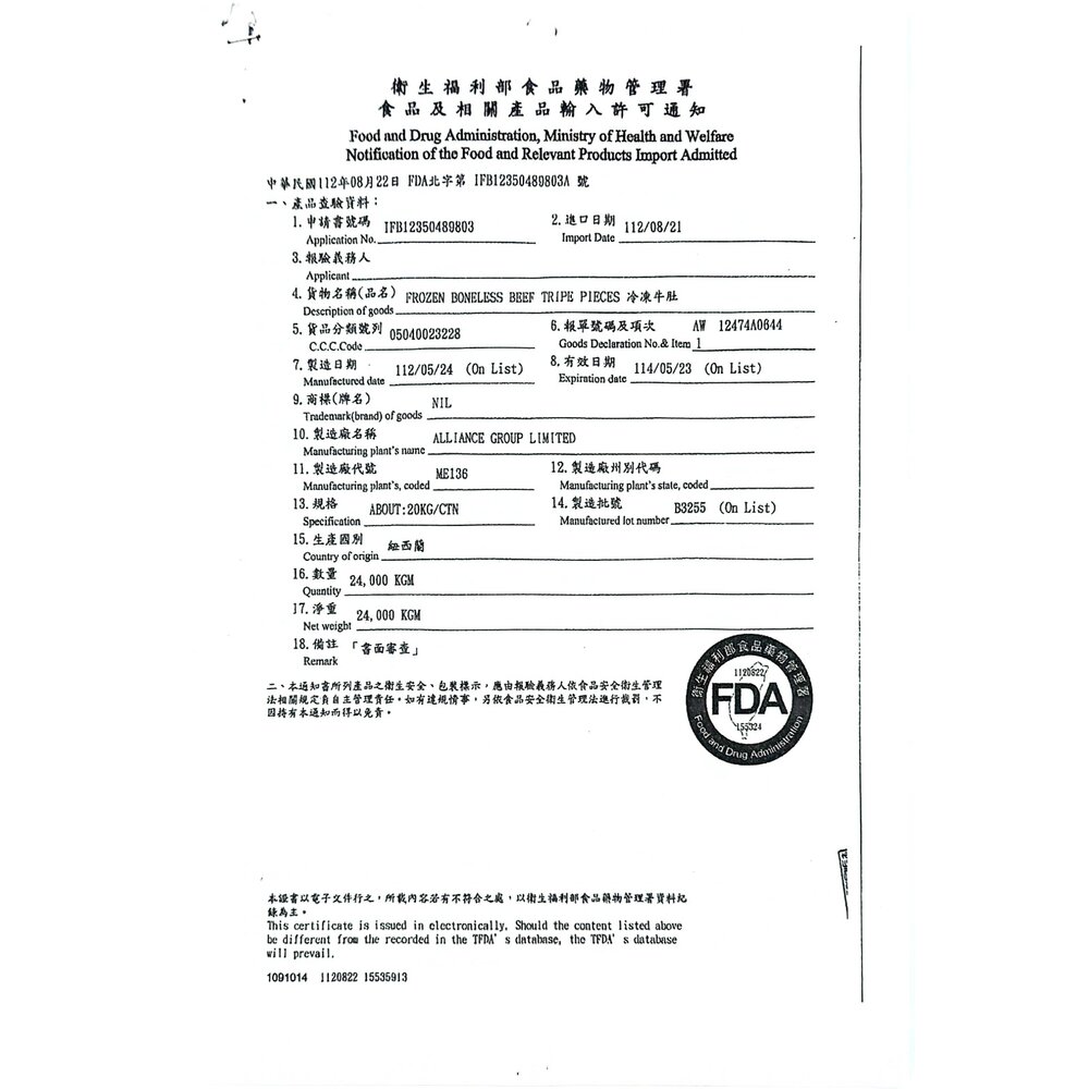 牛肚一斤600g正負5%